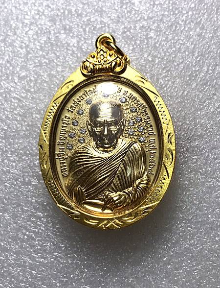 - 120 - เหรียญ "" ปลดหนี้พันล้าน"" หลวงปู่อิ่ม ปัญญาวุโธ วัดทุ่งนาใหม่ นครศรีธรรมราช ** เนื้อนวะ ชุดน้ำทองคำแท้ ฝังเพชรเต็มพื้น ** เลี่ยมพรอบทองพับหลัง ตอก 555 |