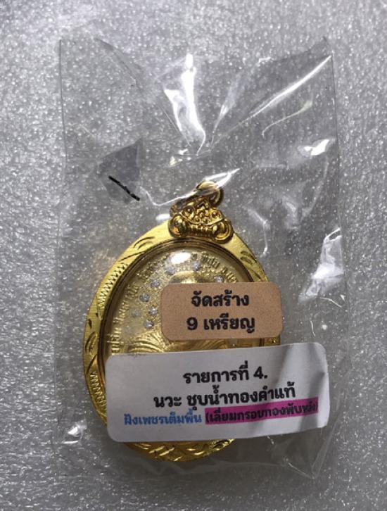 -เหรียญ "" ปลดหนี้พันล้าน"" หลวงปู่อิ่ม ปัญญาวุโธ วัดทุ่งนาใหม่ นครศรีธรรมราช ** เนื้อนวะ ชุดน้ำทองคำแท้ ฝังเพชรเต็มพื้น ** เลี่ยมพรอบทองพับหลัง ตอก 555