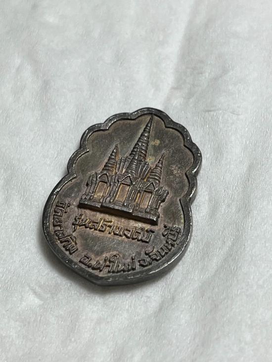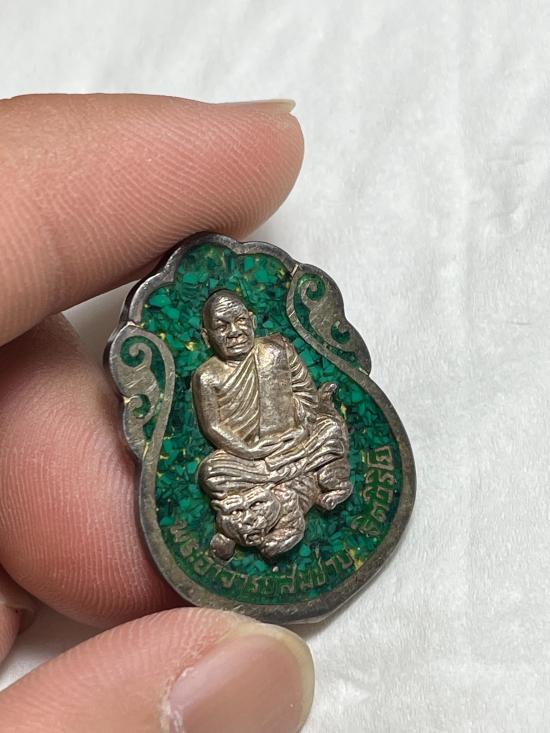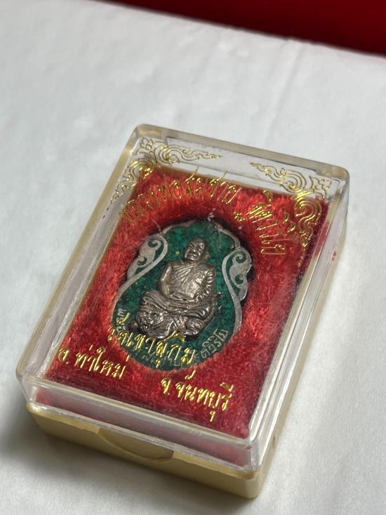 เหรียญหลวงพ่อสมชาย วัดเขาสุกิม รุ่นสร้างเจดีย์ ปี36 เนื้อเงินลงยาเขียวพร้อมกล่องเดิม |