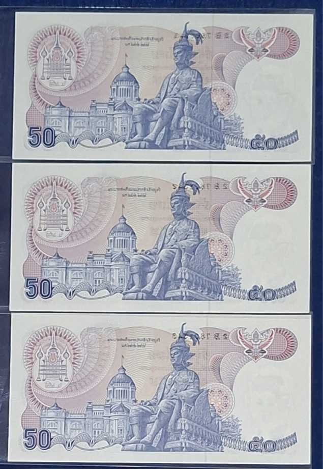 ธนบัตรแบบที่ 13 ในหลวงรัชกาลที่ 9 ชนิด 50 บาท จำนวน 3 ใบ โรงพิมพ์ธนาคารแห่งประเทศไทย ***ธนบัตรสภาพดี ไม่ผ่านการใข้งาน **UNC**พิจารณาตามภาพประกอบ***