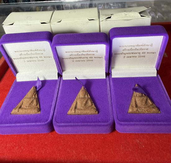 พระนางพญาพิมพ์สังฆาฎิ 48 พรรษา สมเด็จพระเทพพระชนมายุครบ 4 รอบ ปี 2546 หลังตรา สธ และตะกรุดเงิน หลวงพ่อคูณปลุกเสก สวยเดิมกล่องเดิม สวยๆครับ |