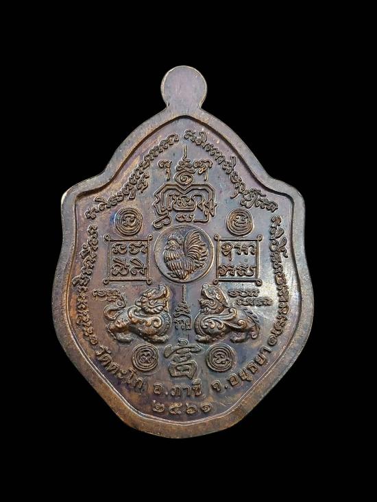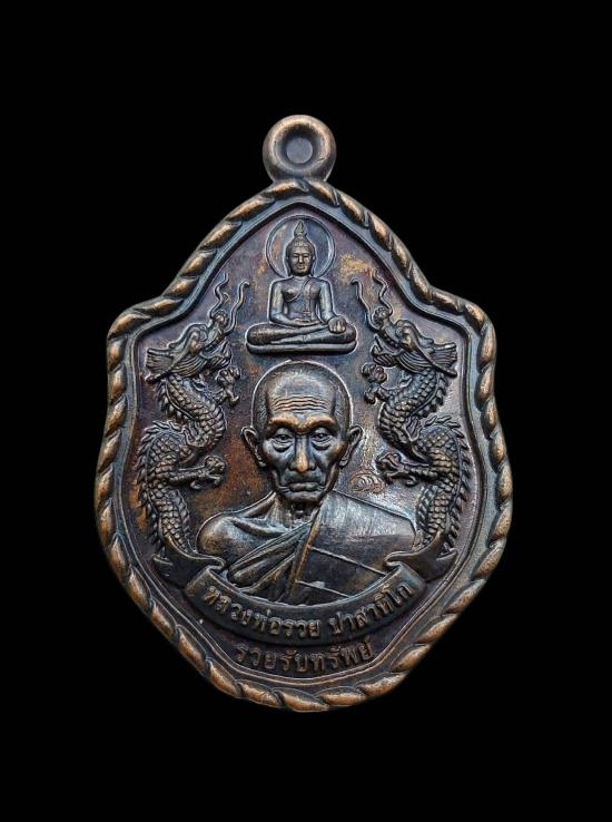 เหรียญมังกรคู่ ลวงพ่อรวย วัดตะโกเหรียญมังกรคู่ รุ่นรวยรับทรัพย์ ปี๖๑ เนื้อทองแดงรมดำ