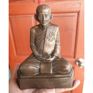 พระบูชาหลวงพ่อกวย พิมพ์ย้อนยุค ปี 2552 ขนาดหน้าตัก 5 นิ้ว ใต้ฐานมีเหรียญหลวงพ่อกวย ย้อนยุค ปี 2539 หายากคับ