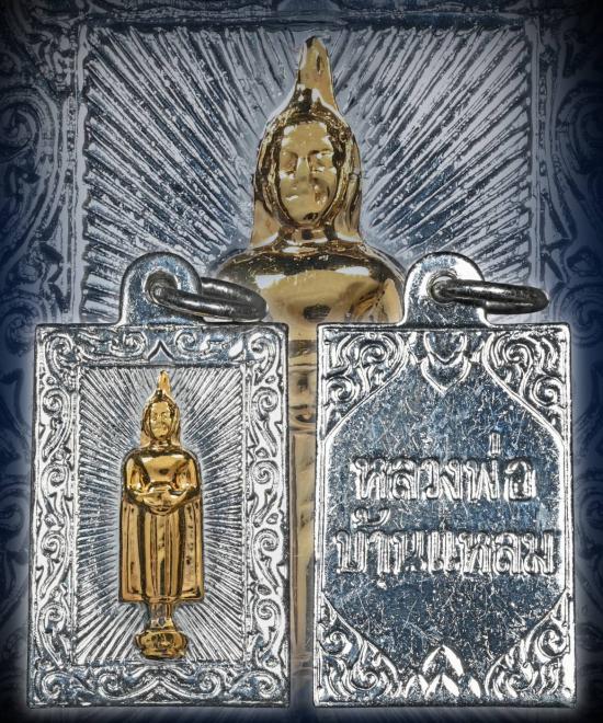 เหรียญแสตมป์ ลพ.บ้านแหลม เนื้อเงินหน้าทองคำ ปี2500 *ห่วงเชื่อม* สวยแชมป์ |
