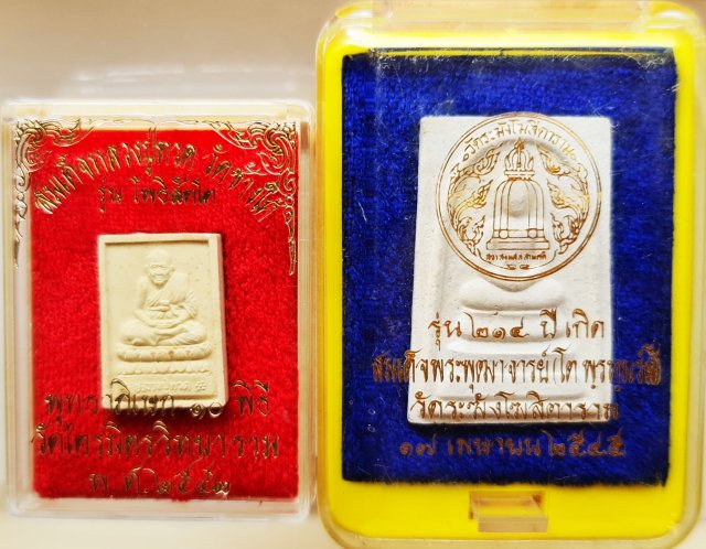 << วัดใจ >> พระสมเด็จหลวงปู่ทวด รุ่นโพธิสัตโต เนื้อผงสีขาวสมเด็จบางขุนพรหม (พิมพ์กลาง) ปึ2541-43 + พระสมเด็จวัดระฆัง รุ่น 214 ปีเกิด พิมพ์พระประธาน ปี2545 พระสภาพสวยพร้อมกล่องเดิม |