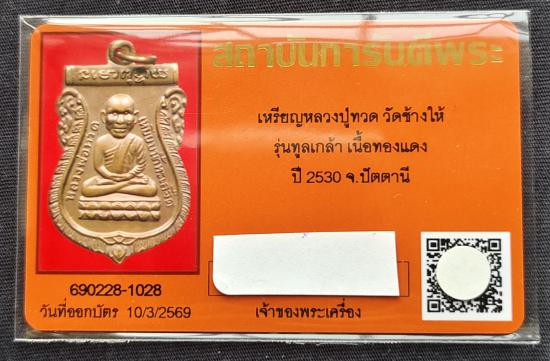 เหรียญหลวงปู่ทวดวัดช้างให้รุ่นทูลเกล้าเนื้อทองแดงปี 2530 จังหวัดปัตตานี(มาพร้อมบัตรรับรองพระเครื่องครับ)