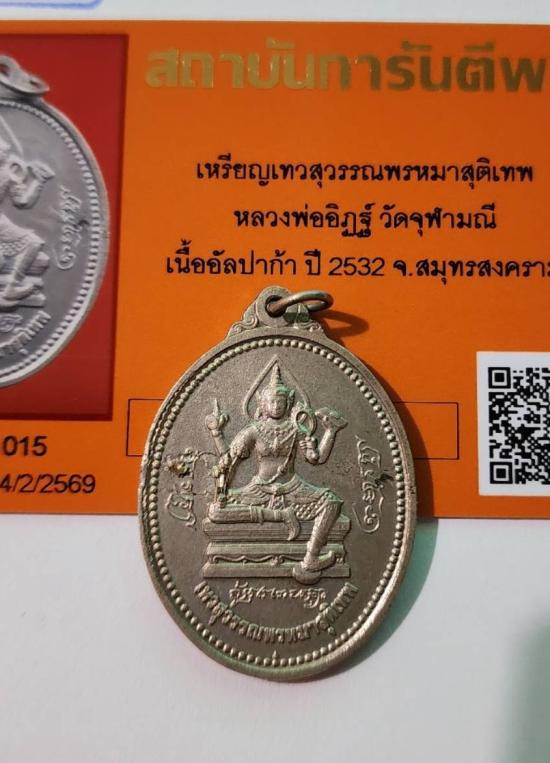 ((รุ่นแรก หายาก ))สุดยอดแห่งเหรียญท้าวเวสสุวรรณพรหมาสูติเทพ จัดสร้าง ปี 2532 เป็นเหรียญท้าวเวสสุวรรณ วัดจุฬามณี ของหลวงพ่ออิฏฐ์ พร้อมบัตรรับรองไม่ต้องวัดใจเรื่องพระแท้