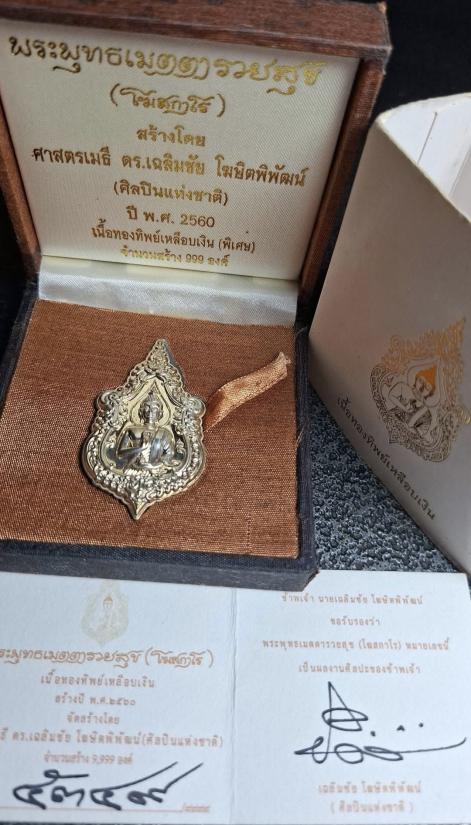 กราบขออนุญาตท่านอาจารย์เปิดเเบ่งปันพระพุทธเมตตารวยสุข(โฆษกาโร)เนื้อทองเหลืองเหลือบเงินหมายเลข5349 มีลายเซ็นต์ท่านอาจารย์ |