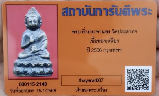 พระกริ่งประทานพร วัดประสาท พ.ศ.2506 พร้อมบัตรรับรอง