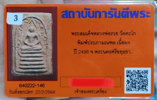 หลวงพ่อรวย วัดตะโก จ.อยุธยา พระสมเด็จ พิมพ์ประภามณฑล รุ่นแรก ปี 2498 |