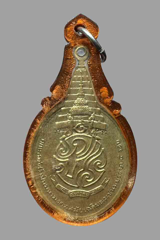 เหรียญพระชัยหลังช้าง ในหลวงครบ 5 รอบ หลัง ภปร. พิธีปลุกเสกพร้อมเหรียญพระนอน วัดโพธิ์ ปี 2530 |