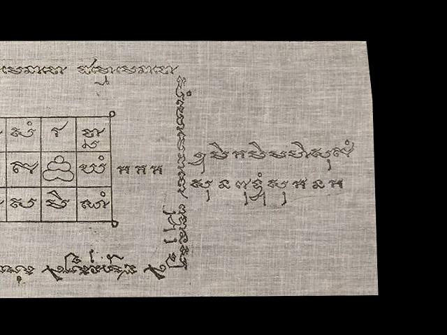 ***ผ้ายันต์กันฟ้า ขนาด 6x16 นิ้ว หลวงพ่อผิว วัดสง่างาม จ.ปราจีนบุรี ปี 2515***