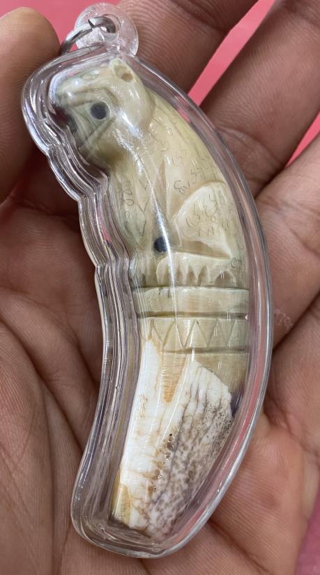 เขี้ยวหมูตันแกะเสือ จานอักขระเต็ม สภาพดี เลี่ยมกันน้ำพร้อมใช้ครับ