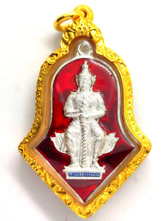 เหรียญท้าวเวสสุวรรณ ( รุ่นแรก ) หลวงพ่ออิฎฐ์ วัดจุฬามณี ปี 2545 เลื่อมทองสั่งทำหนาๆ (ประมาณ 5.34 กรัม) พร้อมบัตรรับรองครับ
