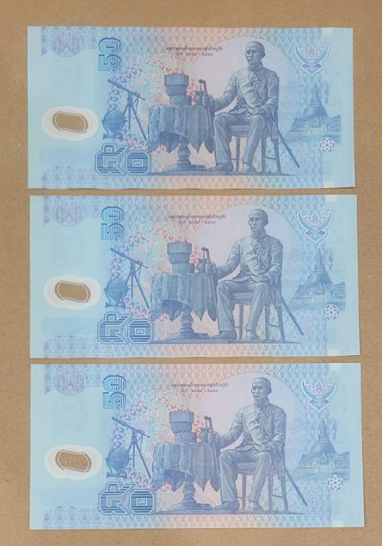 ธนบัตร 50 บาท พอลิเมอร์ 3 ฉบับ เลขเรียง |