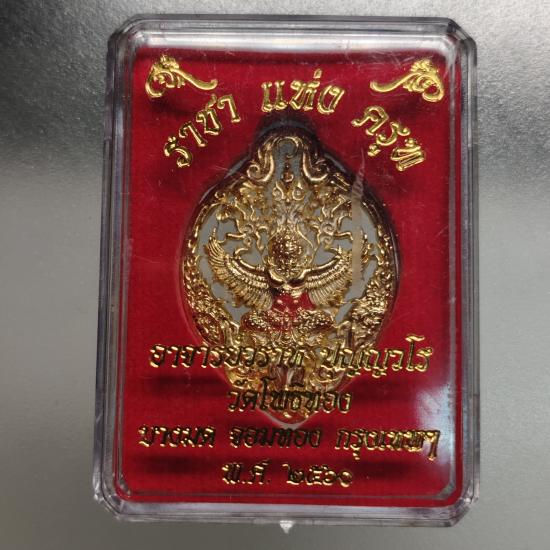 พญาครุฑ "ครุฑฉลุ" รุ่น ราชาแห่งครุฑ กะไหล่ทอง หลวงพ่อวราห์ วัดโพธิ์ทอง ปี 2560 สภาพสวย มาพร้อมกล่องเดิมเดิม ปลุกเสกโดย หลวงพ่อวราห์ เจ้าอาวาสวัดโพธิทอง เนื้อกะไหล่ทอง