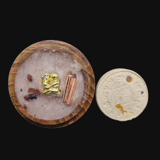 เคาะเดียวแดง พญายูงคำ รุ่นแรก เนื้อเกสรทั้งห้าปัดทอง เพ้นส์สี และ ตลับไม้สีผึ้งเนื้อหอม รังผึ้งร้าง ขวางเดือนขวางตะวัน รุ่นแรก ฝังอิ่น ตะกรุด ในเมตตาบารมี เจ้าปู่จั่นต่า กาวิสาละ ครูบากฤษดา เมตตาเษก