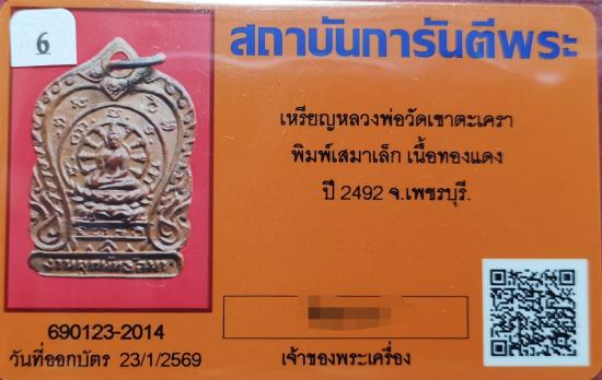 เหรียญเสมาเล็ก ลพ.วัดเขาตะเครา เนื้อทองแดง ปี2492 จ. เพชรบุรี มาพร้อมบัตรรับรอง |