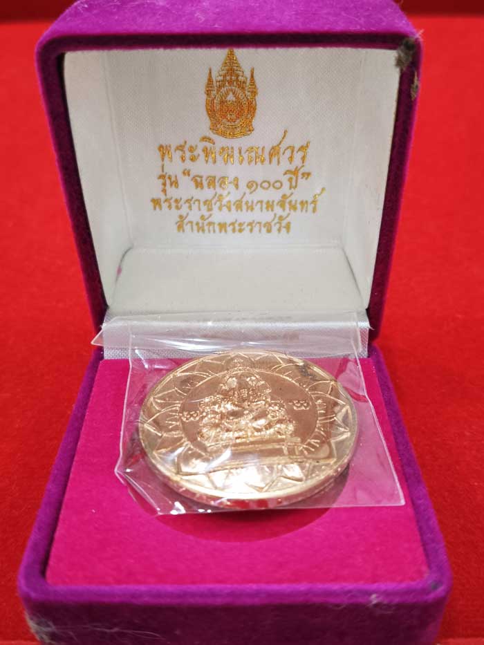 วัดใจ 100 เดียวแดง +++ เหรียญพระพิฆเนศ 100 ปี พระราชวังสนามจันทร์ สภาพสวยพร้อมกล่องเดิม |