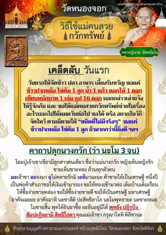 โชคลาภมากกว่าแม่นางรับ แม่นางโกย ! แม่คนสวยกวักทรัพย์ หลวงปู่นวล วัดหนองจอกหลับรับหมื่น ตื่นรับแสน นางกวักวิเศษสูตรนี้ ได้ชื่อว่า ห้ามจน