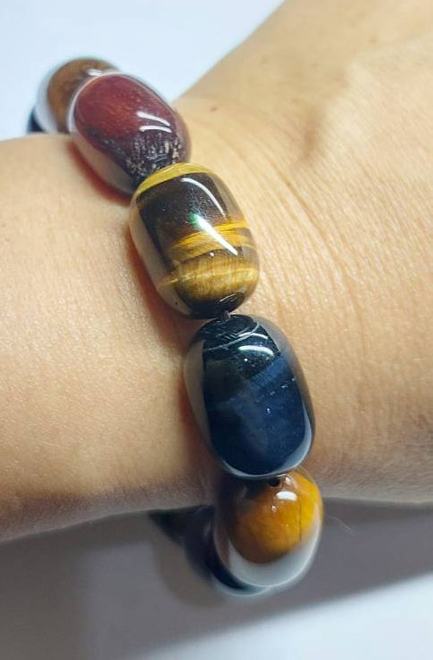 ***วัดใจ***สร้อยข้อหินไทเกอร์อาย 3 ทหารเสือ เม็ดใหญ่ |