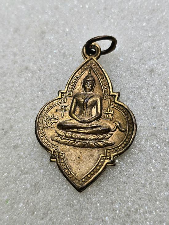 เคาะเดียวแดง เหรียญหลวงพ่อโต(ซำปอกง) วัดกัลยาณมิตร หนังสือจีน ปี2490 เนื้อทองแดงกะไหล่ทอง ห่วงเชื่อม หลังแบบ |