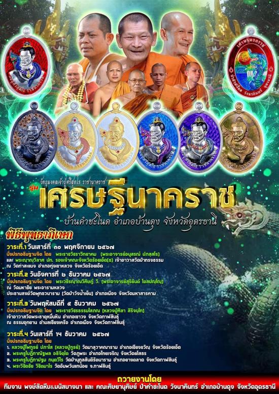 เหรียญราชานาคราช เศรษฐีนาคราช พิมพ์พ่อปู่ศรีสทโธ คำชะโนด วังนาคิน จ.อุดรธานี ปี2567 พิธีดี คณาจารย์ร่วมปลุกเสกมากมาย ซีนเดิมๆชุด5องค์ เอาไปลุ้นเนื้อสูงๆเลขสวยๆเอาเองเลย ประกันแท้แน่นอน