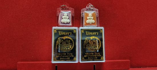 แบ่งปัน ปิดตาผงกระดูกผี หลวงพ่อวิญญู สุสานร้างพนมสารคาม วัดท่าลาดใต้ ชุด2ตน ชุดกระเบื้องเคลือบ7สี กรรมการหลังอัญมณีพลอยเสก สีม่วงเลข167 สีส้มเลข147 พร้อมกล่องเดิมๆ ประกันแท้