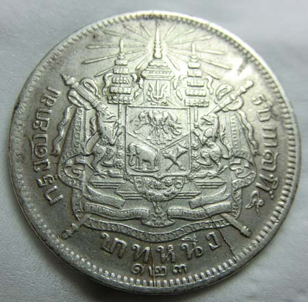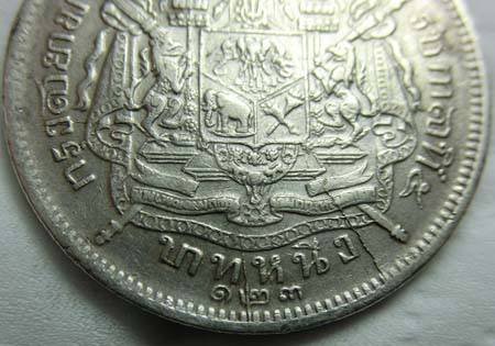 เหรียญบาทหนึ่ง รัชกาลที่ 5 หลังตราแผ่นดิน ร.ศ.๑๒๓ |