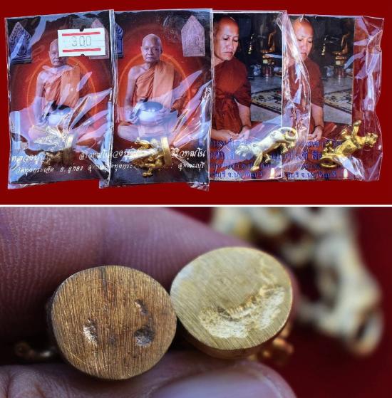 ชุด 4 องค์...พระพิฆเณศสมปรารถนา เนื้อทองผสม ปี 2550 หลวงปู่นิเวศน์ วัดทุ่งกระเจ็ด + พยัคฆ์บารมี เนื้อทองเหลือง ปี 2555 หลวงพ่อขันตี วัดหลวงบดินทร์เดชา พร้อมซองรูปเดิมจากวัด