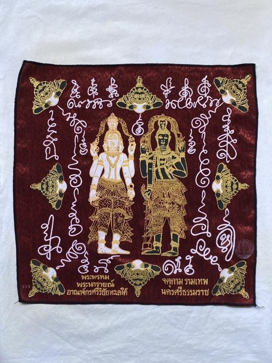 เคาะเดียวแดง ผ้ายันต์ พระพรหม พระนารายณ์ มิ่งมงคล รุ่นมงคลจักวาล