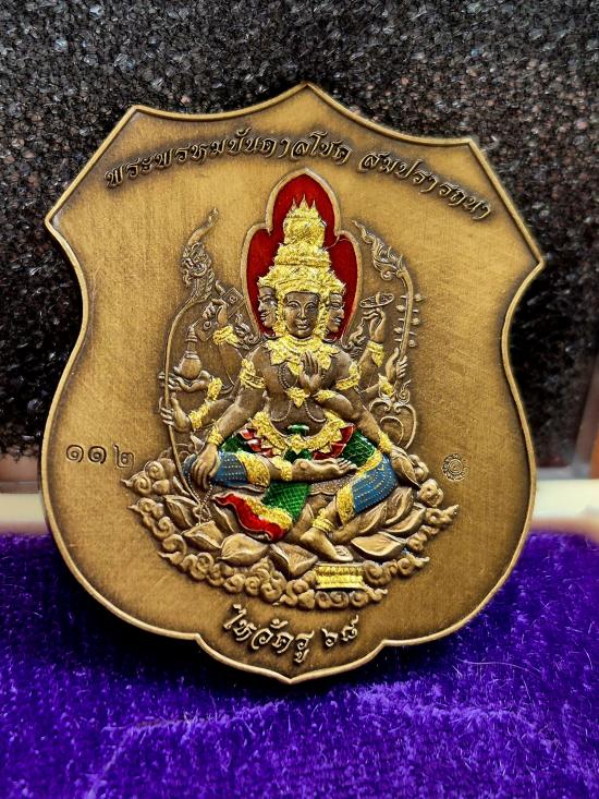 เหรียญแกะสด พระพรหม หลังพระราหู ครูบาศักดิ์ จ.ลำปาง เนื้อทองทิพย์ซาตินลงยา รายการแจกศูนย์ เลข112