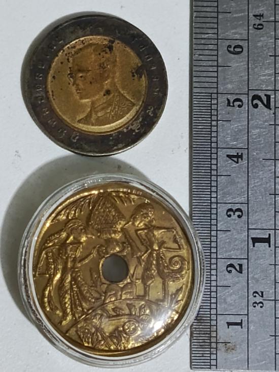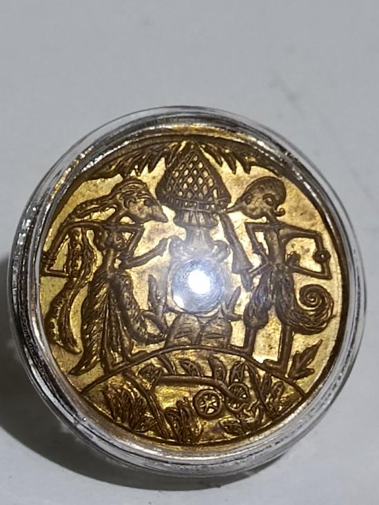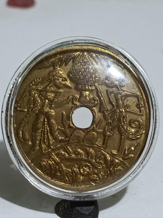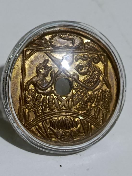 เบี้ยวา หรือ เบี้ยชวา วัดชลอ บางกรวย นนทบุรี รุ่นแรก เนื้อกะไหล่ทอง เครื่องรางพลิกร้าย กลายเป็นดี สวยพร้อมเลี่ยมพลาสติกกันน้ำ