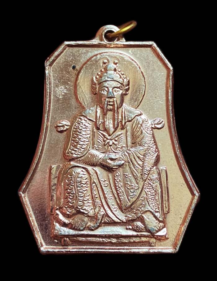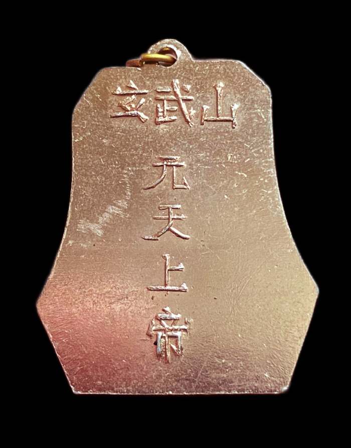 เหรียญเจ้าพ่อเสือ หรือ เฮี่ยงเทียนเสี่ยงตี่ (玄天上帝) จากศาลเจ้าเฮียงบู๊ซัว ประเทศจีน เนื้ออลูมิเนียมกะไหลนาค