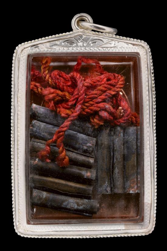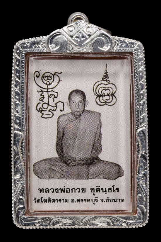 รูปหลวงพ่อกวยด้านหลังมีตะกรุดครูบาวัง(ตะกรุด9กลุ่ม) ใสเองแล้วพาไปเลี่ยมเงินครับ สุดคลาสิค