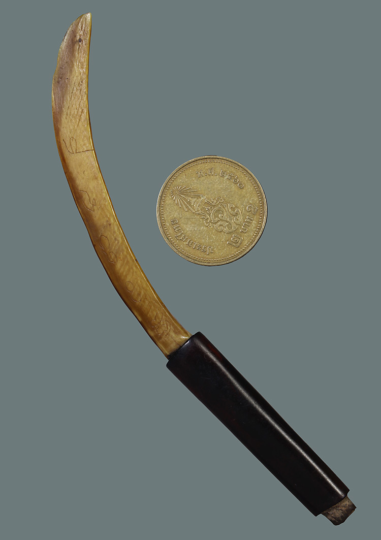 วัดใจ**เครื่องราง มีดแหกโบราณล้านนา เนื้องาแกะมีจาร ยาว 4.5นิ้ว ของทนสิทธิ์มีดีในตัว หายาก....ตามสภาพครับ