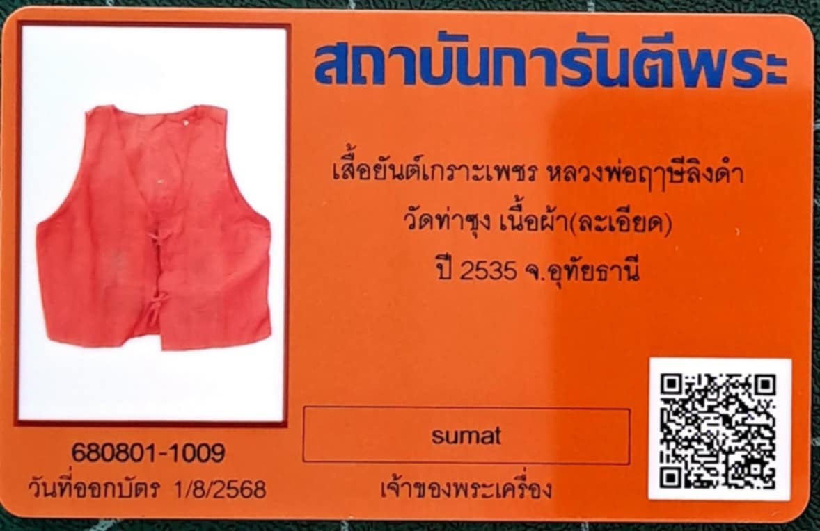 ลงใหม่ ประมูลได้ไม่โอน เคาะเดียว @@@ เสื้อยันต์เกราะเพชรธงมหาพิชัยสงคราม หลวงพ่อฤาษีลิงดำ วัดท่าซุง ปี2535 พิธีชาตรี หายาก @@@