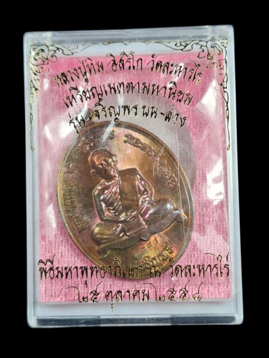 เหรียญเจริญพรหลวงปู่ทิม เนื้อทองแดงผิวรุ้ง "รุ่นเจริญพรบน-ล่าง" วัดละหารไร่ ปี 2558 |