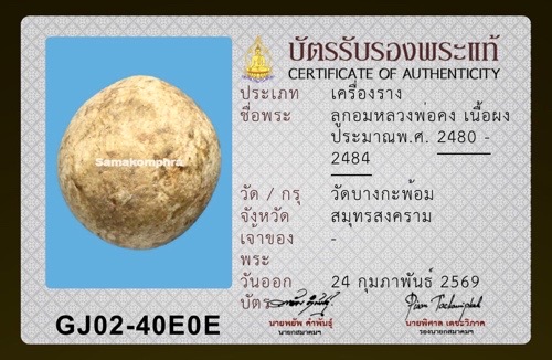 1ใน5เบญจภาคีลูกอมพร้อมบัตรสมาคมพระเครื่อง รายการนี้ทางเว็ปgยังไม่มีข้อมูลในการออกบัตรรับรองนะครับ จะได้ไม่เสียเวลากันครับ ใครokบัตรสมาคมเชิญครับ