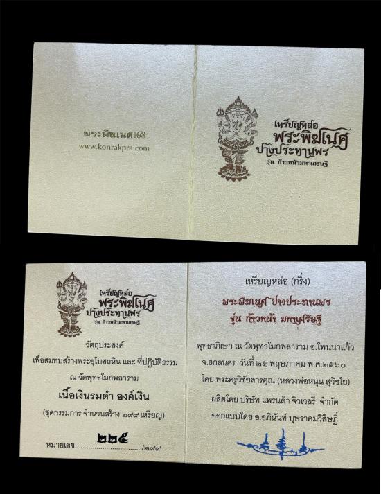 เหรียญหล่อพระพิฆเนศ ปางประทานพร รุ่นก้าวหน้า มหาเศรษฐี ลพ. หนุน วัดพุทธโมกข์ รายการ 9.1 เนื้อเงินรมดำ องค์เงินน หมายเลข ๒๒๕