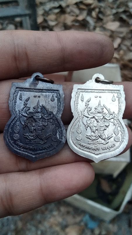 เหรียญดีกรุงเก่า เหรียญเสมารูปเหมือน หลังพระนารายณ์ออกศึก รุ่นแรก เนื้ออัลปาก้า และเนื้อทองแดงรมดำ จัดสร้างขึ้นในปี 2543 พระอาจารย์สาท วัดขนอนเหนือ