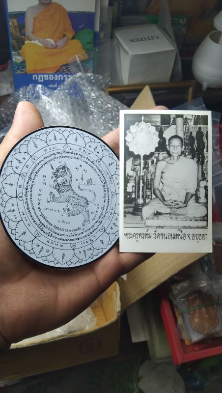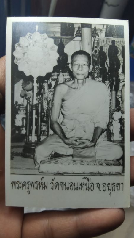 รูปถ่ายหลวงพ่อพรหมพัดยศ สีขาวดำ ยุคต้นปี๒๕๑ๆ "พิเศษมาคู่สติ๊กเกอร์หลวงพ่อพรหม ด้านหลังเป็นเสียงเทวดา วัดขนอนเหนือ จ.อยุธยา "ใบนี้ใบสุดท้ายแล้วนะครับผม" |