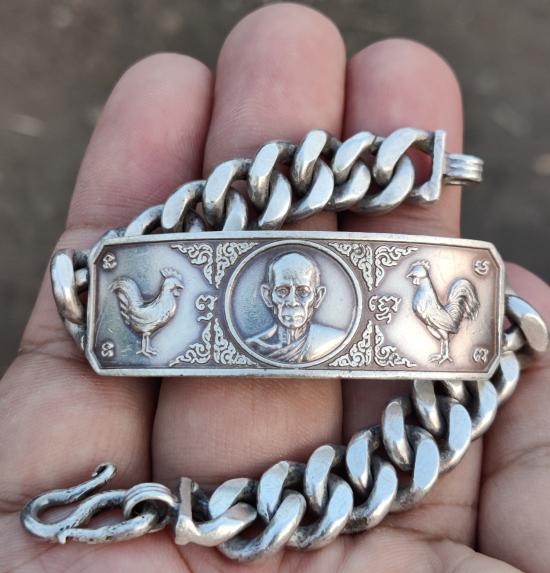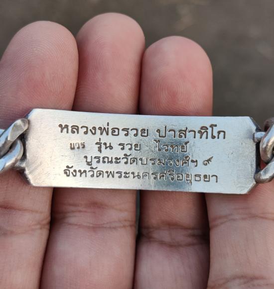 หลวงพ่อรวย วัดตะโก จ.อยุธยา เลสข้อมือ รุ่นรวย ไวทย์ ปี2549 เนื้อเงิน ขนาด4 บาท