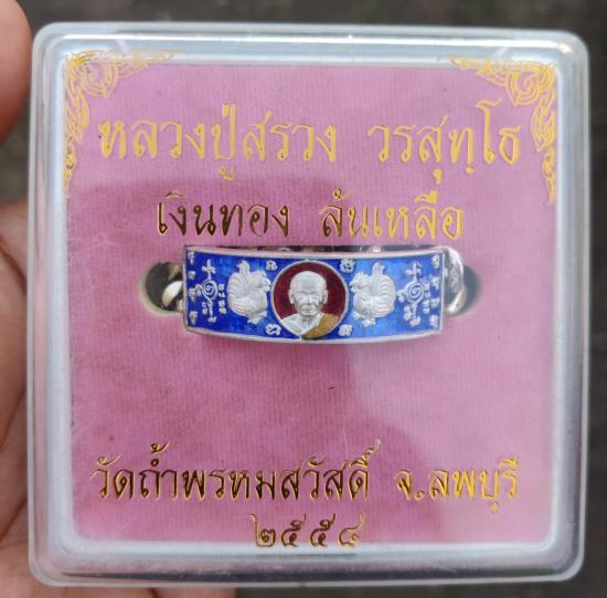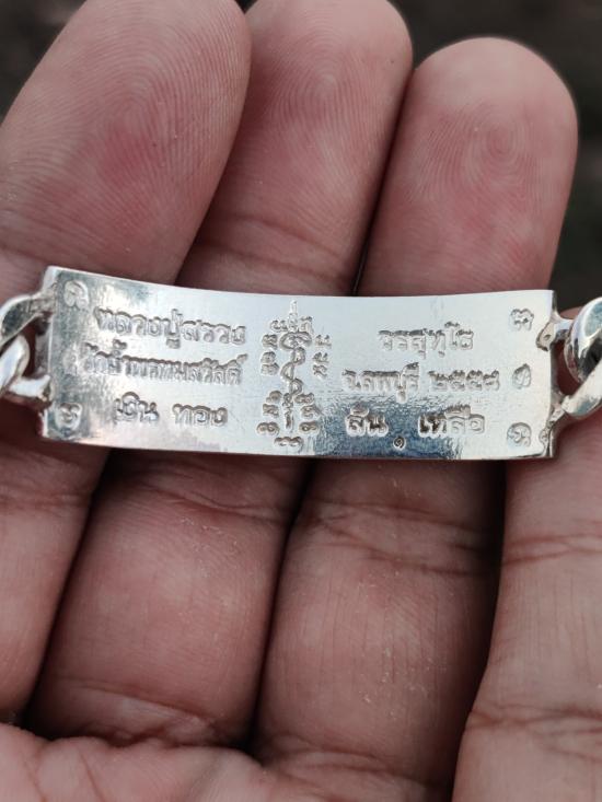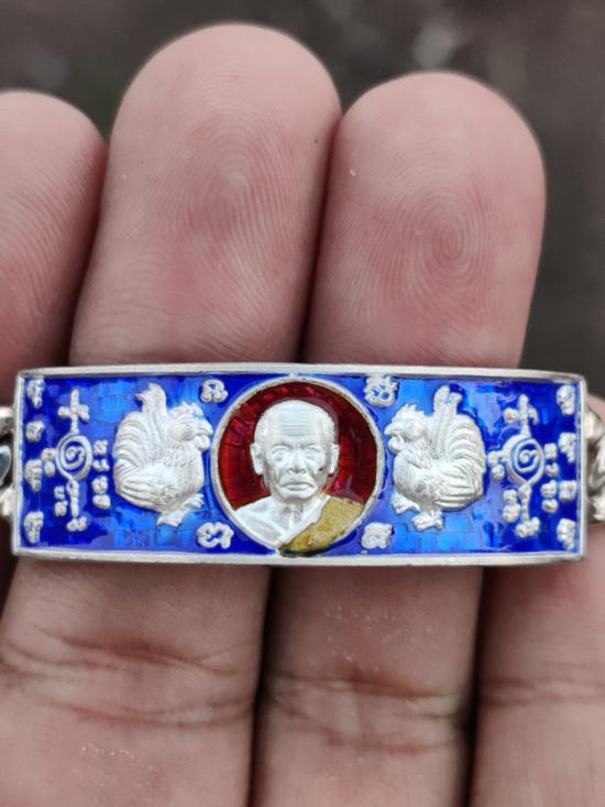 หลวงปู่สรวง วรสุทฺโธ วัดถ้ำพรหมสวัสดิ์ จ.ลพบุรี เลสข้อมือ รุ่นเงินทองล้นเหลือ ปี 2558 เนื้อเงินลงยา (เลข1 ) ขนาด2 บาท ทันหลวงพ่อเสก