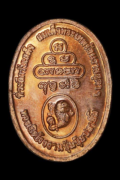 เหรียญ ( พิมพ์รูปไข่เล็ก ) ที่ระลึกรับเสด็จ สมเด็จพระเทพรัตนราชสุดา ฯ ทรงเปิดโรงงานปุ้มปุ้ยปลายิ้ม ( เนื้อทองแดง ) พ.ศ.2539 ( กล่องเดิม )