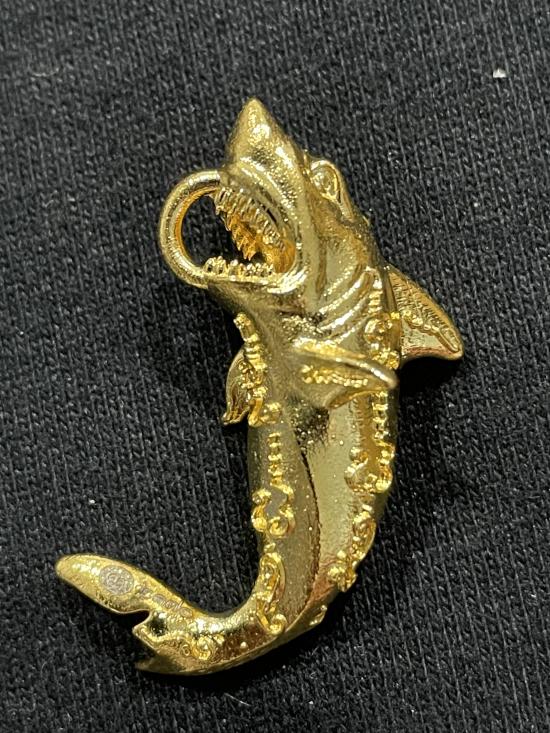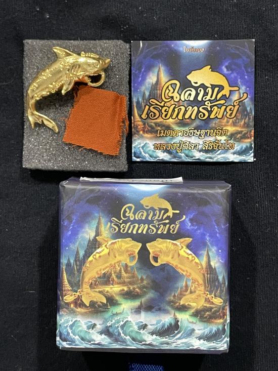 ฉลามเรียกทรัพย์ หลวงปู่ศิลา สิริจันโท เนื้อกะหลั่ยทองชุบทองคำแท้ หมายเลข 2170 พร้อมจีวร กล่องเดิม