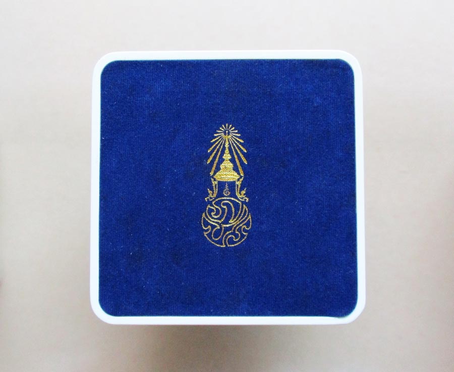 บรรจุในกล่องกำมะหยี่สีน้ำเงิน ประทับตราสัญลักษณ์พระปรมาภิไธยย่อ " ภปร "