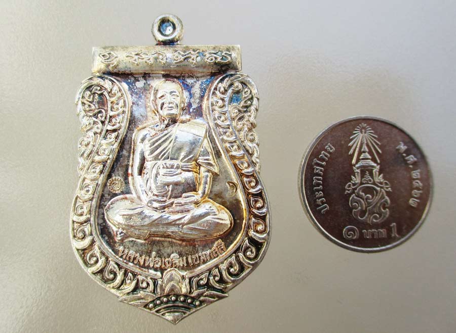 เหรียญเสมารุ่นแรก หลวงพ่อเฉลิม เขมทสฺสี วัดพระญาติการาม จ.อยุธยา รุ่น ปฏิสังขรณ์อุโบสถ ครั้งที่ 1พ.ศ.2554 เนื้อเงิน ตอก 2 โค๊ต ตอกเลข กล่องกำมะหยี่เดิมๆ !!