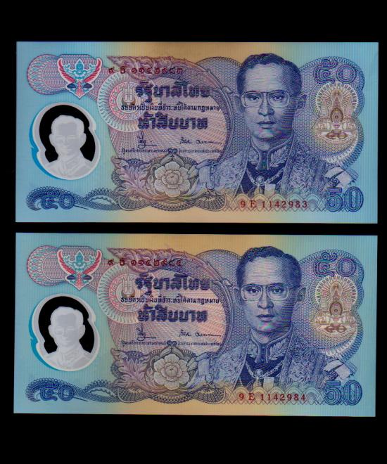 ## ธนบัตร 50 บาท ## กาญจนา ##เรียงเลข ## 2 ฉบับ ## ไม่ผ่านการใช้ |