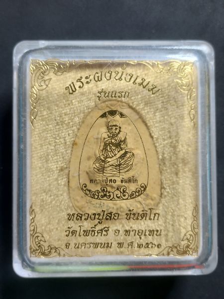 พระผงนั่งเมฆ หลวงปู่สอ ขันติโก วัดโพธิ์ศรี อ.ท่าอุเทน จ.นครพนม พร้อมกล่องเดิมๆ